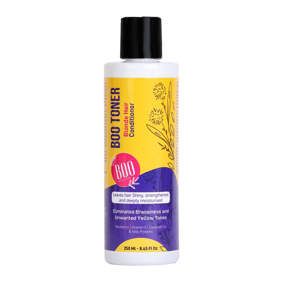 Tired of unwanted yellow tones in your hair? Boo Purple Toner is here to transform your color! This purple conditioner-based toner cancels out all yellow hues, leaving your hair with a cool, sandy finish.